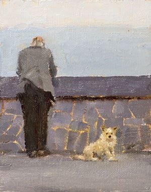 I stopped for a break on a trip to the Cliffs of Moher and saw this gentleman pondering the grey sea, alone, with his dog.