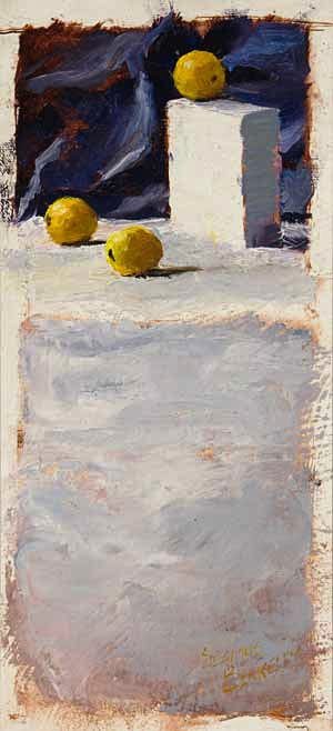 Three Lemons - A Berkeley Daily Oil Painting by Seamus Berkeley12″ x 5.25″, Oil on canvas on board, Inquire.